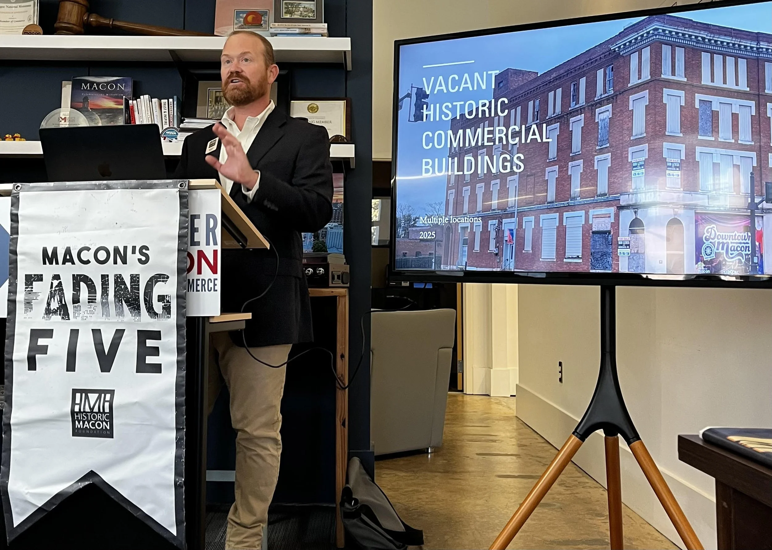 Nathan Lott, Historic Macon’s executive director, reveals the 2025 entry to the Macon’s Fading Five list.